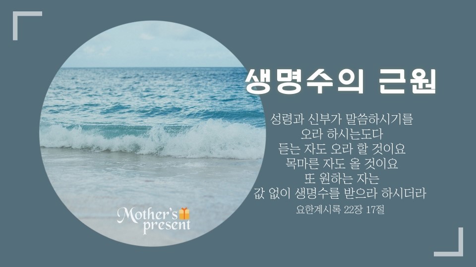 이 마지막 시대 우리에게 영원한 생명수를 허락하시는 분은 아버지하나님과 어머니하나님이십니다.